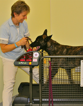 In einer physiotherapeutischen Sitzung wird zuerst das Problem funktionell beurteilt. Das heisst es werden gleichermassen alle beteiligten Strukturen des Bewegungsapparates wie Gelenke, Muskeln, Bänder und Nerven beurteilt. Es wird ein Therapieplan in der Praxis und für zu Hause erstellt und die erste Therapie durchgeführt. Dabei wird vorwiegend manuell gearbeitet. In der Klinik steht zudem ein Laufband zur Therapie, aber auch zum Muskel- und Konditionsaufbau bei Sporthunden zur Verfügung.
